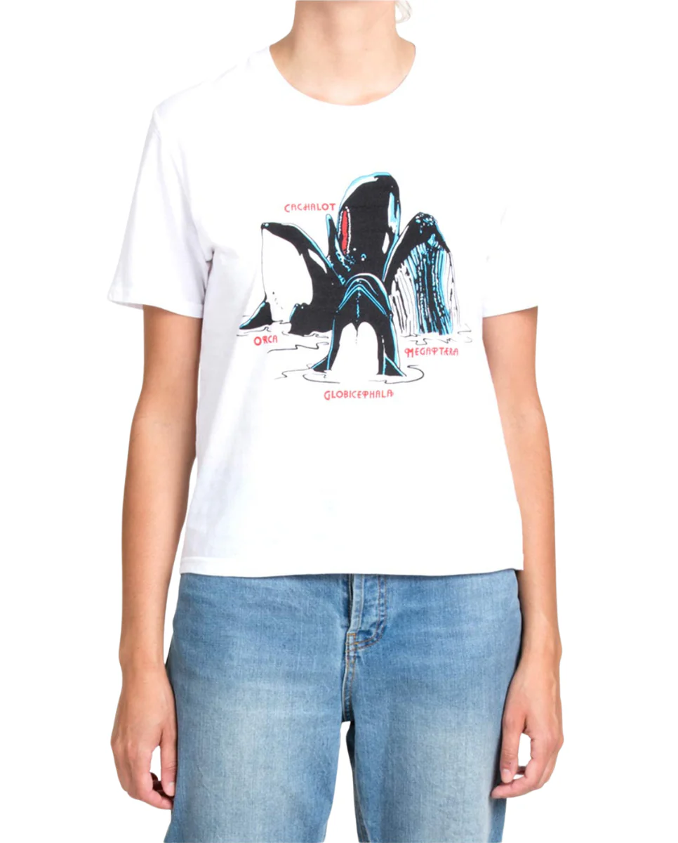 Classic Fit. Whale graphic on front, text graphic on back.Â