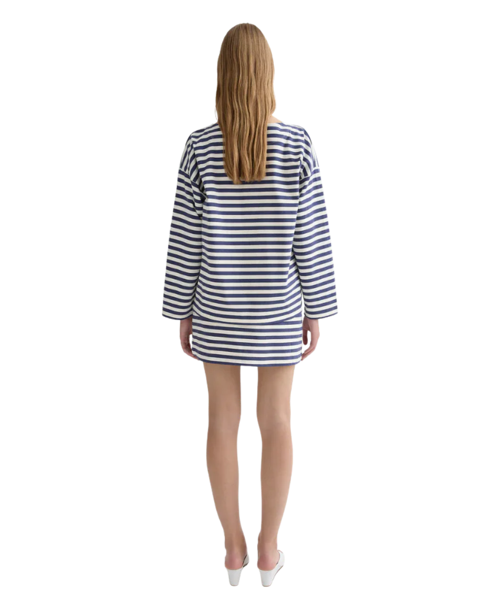 Crafted from 100% cotton, the Haisley Top is patterned in a timeless navy and ivory stripe. Designed for a boxy, relaxed fit, it features drop shoulders and long sleeves.
