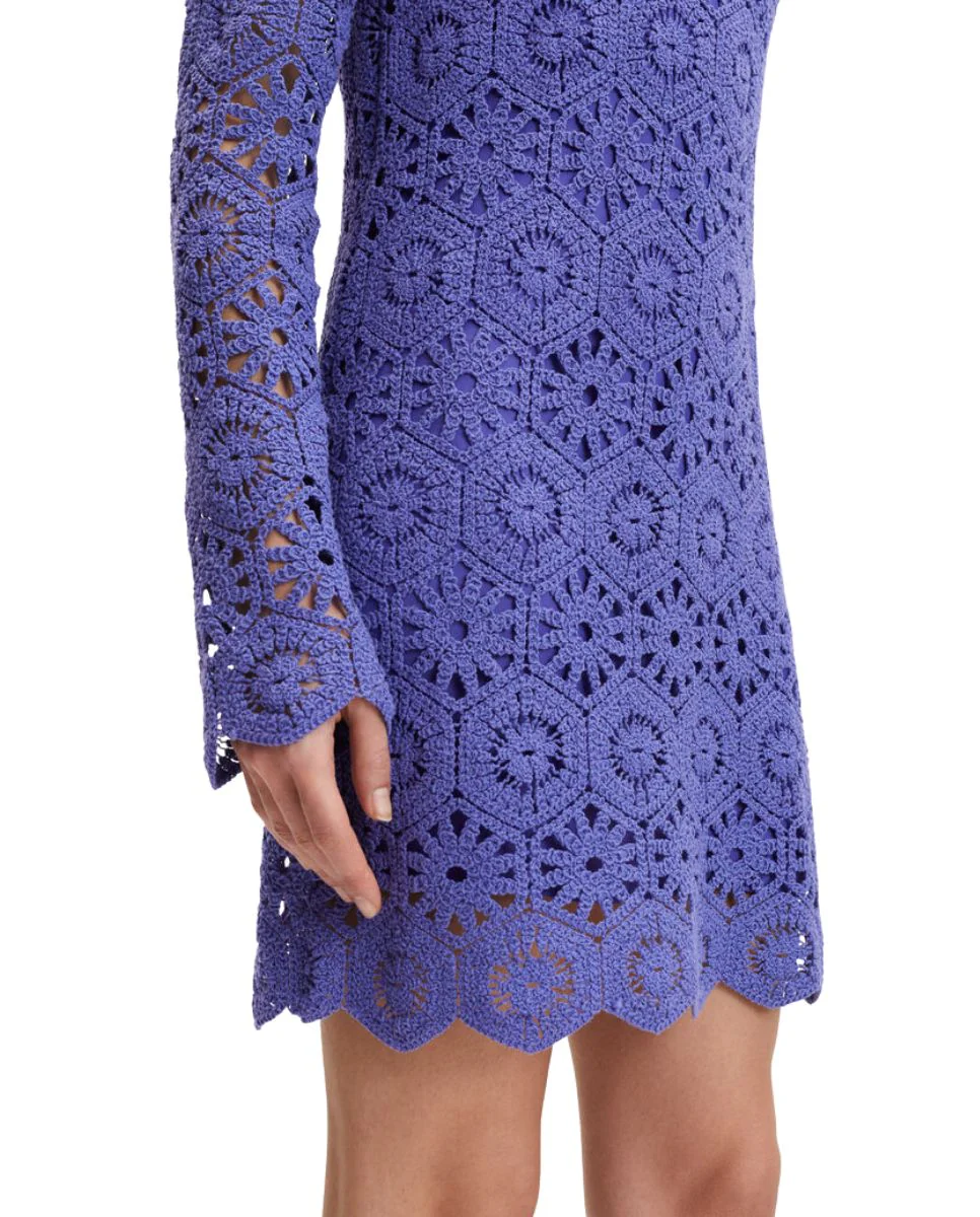 Slim fitting short dress with long sleeves by SAMSĂE SAMSĂE. Crochet look lace cotton blend fabric with fully lined body.